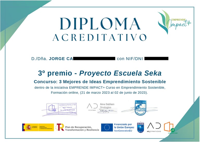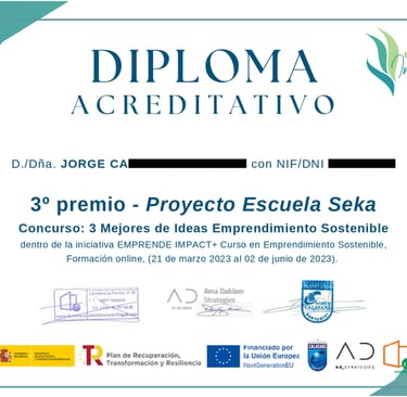 El proyecto fué seleccionado como ganador del 3º Premio en la iniciativa: "Emprende Impact +" en el año 2023.